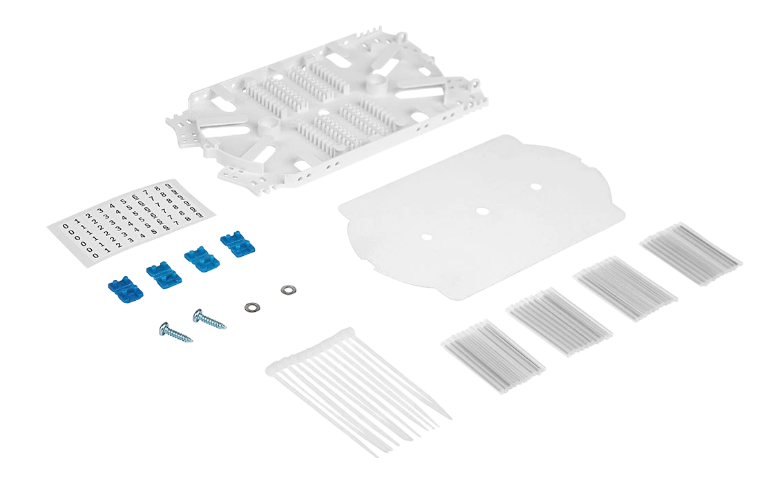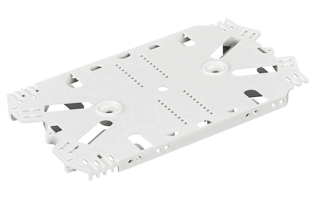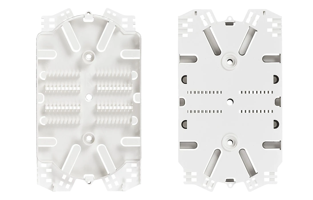 Конструкция кассеты позволяет заводить модули с ОВ с любого из четырёх углов и осуществлять изменение направления укладки запаса волокон. Свободная укладка дает возможность трехкратной переделки сварки волокна без уменьшения числа витков запаса.