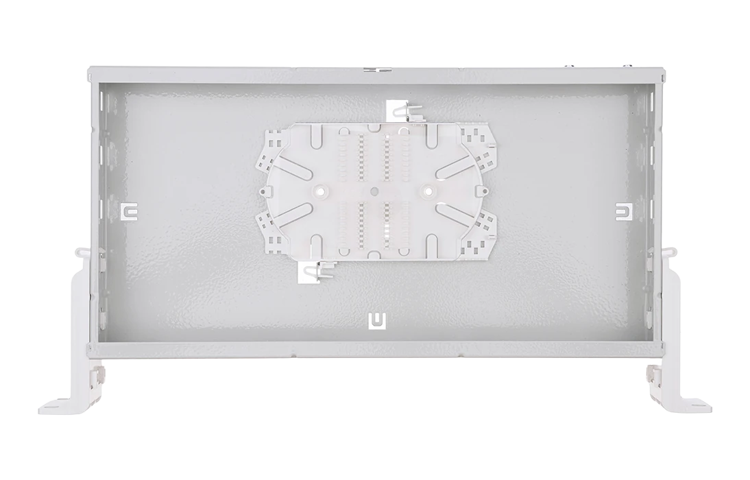 Крепление кабеля по оболочке осуществляется металлическим хомутом и/или нейлоновыми стяжками, на Т-образном лепестке. Центральный силовой элемент крепится при помощи металлической скобы. Сменные пластиковые планки на 4 и 8 отверстий обеспечивают установку адаптеров-розеток различных типов: FC, SC, ST, дуплекс LC.