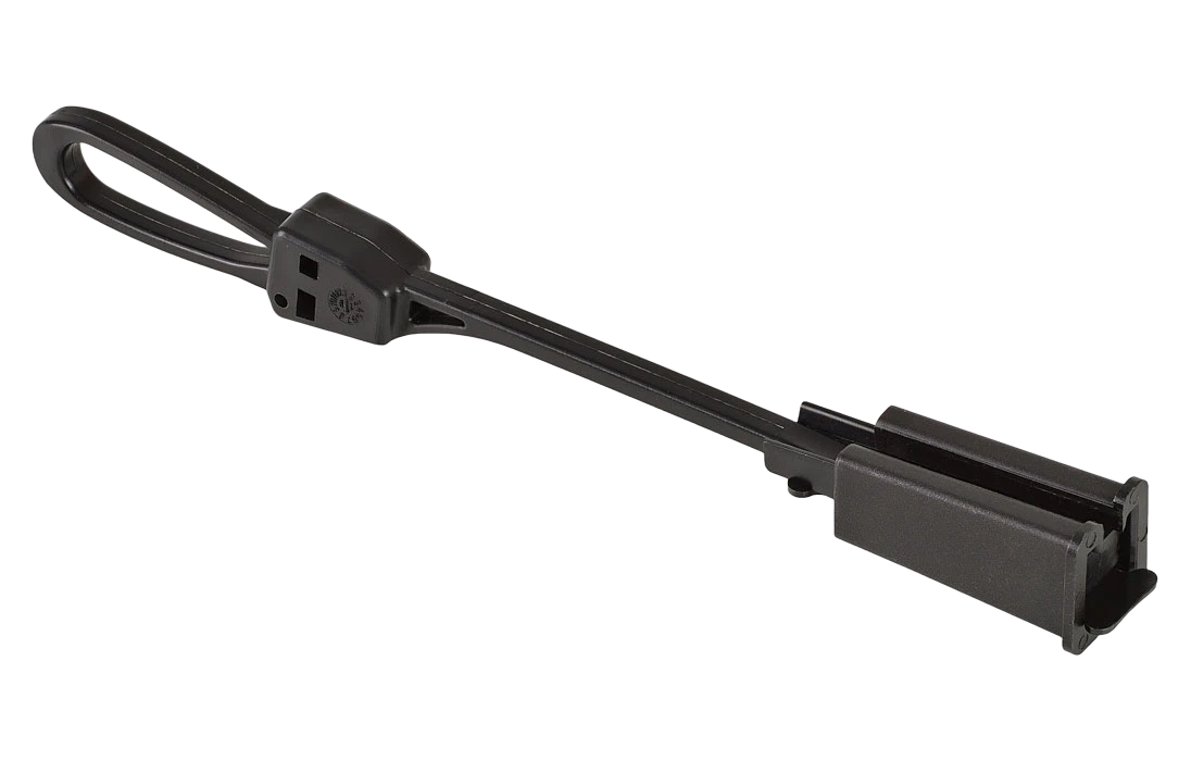 Используется для подвески плоского ОК на опорах линий связи, линий электропередач, столбах освещения, между зданиями и сооружениями.