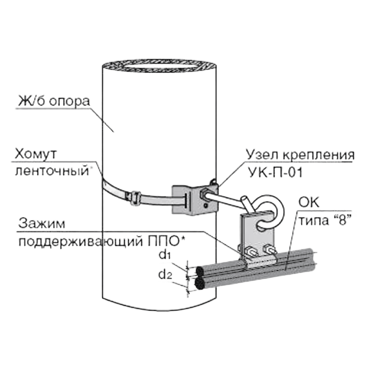 Предназначен для подвески самонесущего оптического кабеля типа "8" на промежуточных опорах ВЛ до 20кВ, связи, городского электрохозяйства (уличного освещения, наземного электротранспорта), элементах зданий и сооружений с длиной пролета до 80 метров.